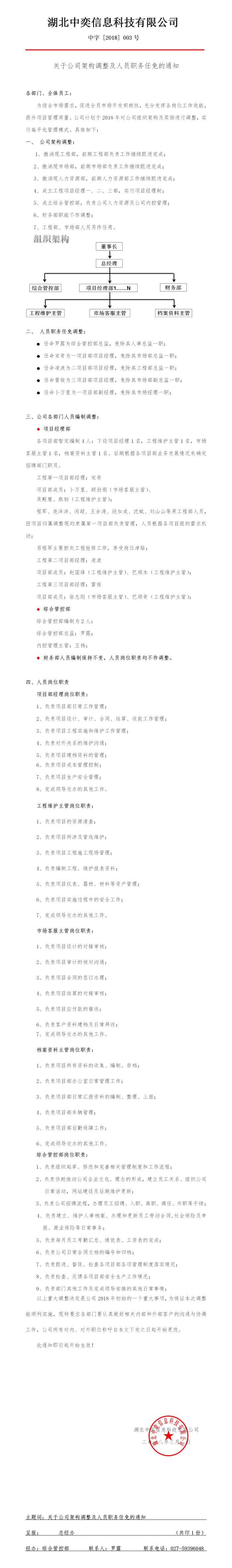 2018-002号--关于公司架构调整及人员职务任免的通知