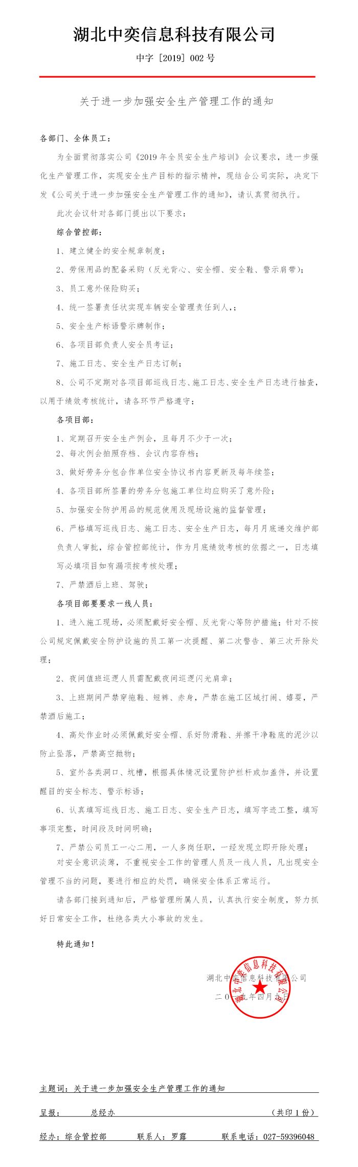 2019-002号--关于进一步加强安全生产管理工作的通知